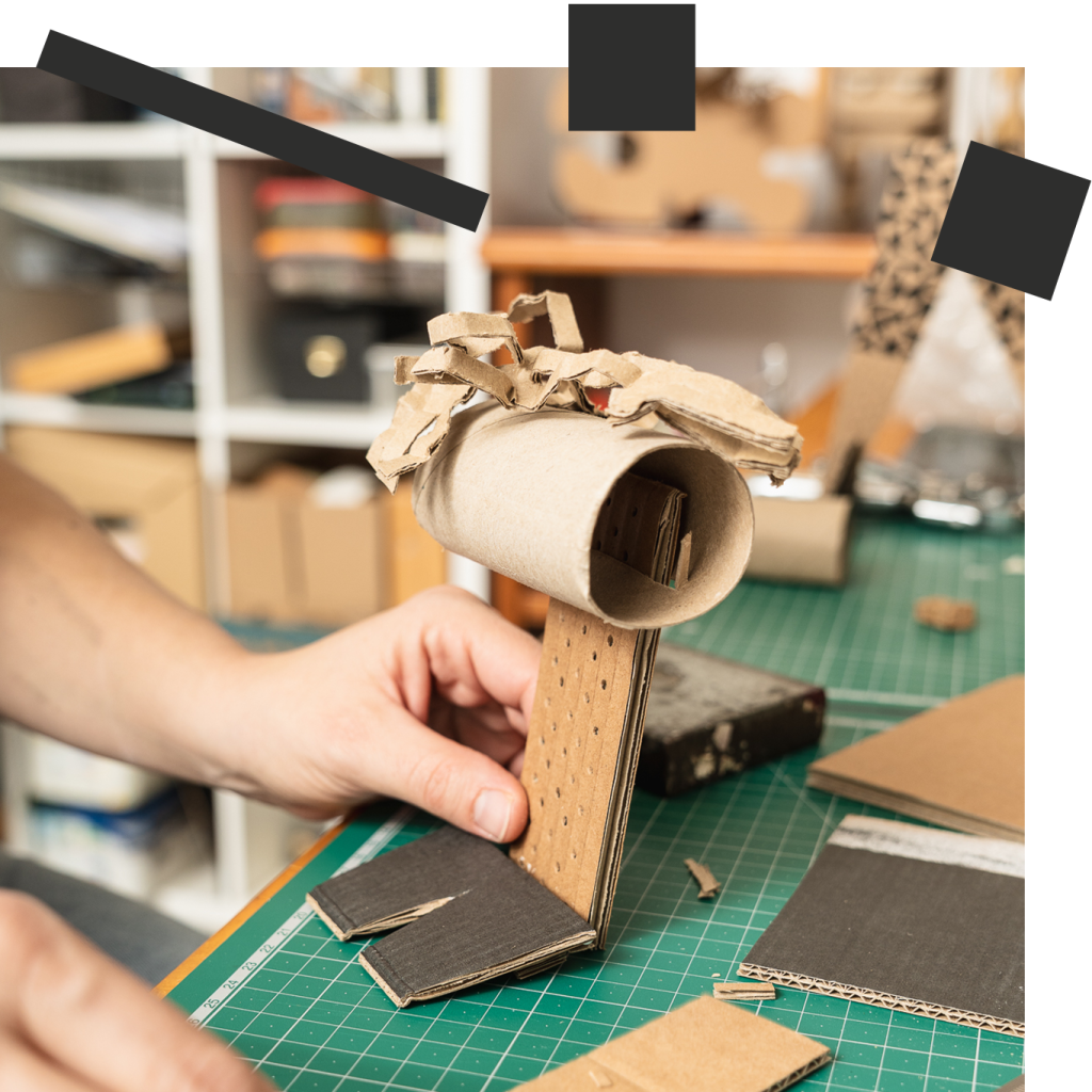 Nuestro proyecto es un universo donde el cartón conversa con el código, el trazo del pincel pasa a la pantalla y lo humano y lo tecnológico se encuentran sin imponerse.